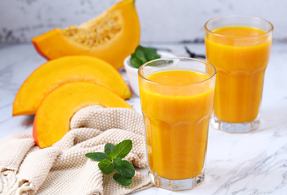 精选日本南瓜,鲜榨成汁,色泽艳丽,入口丝滑。