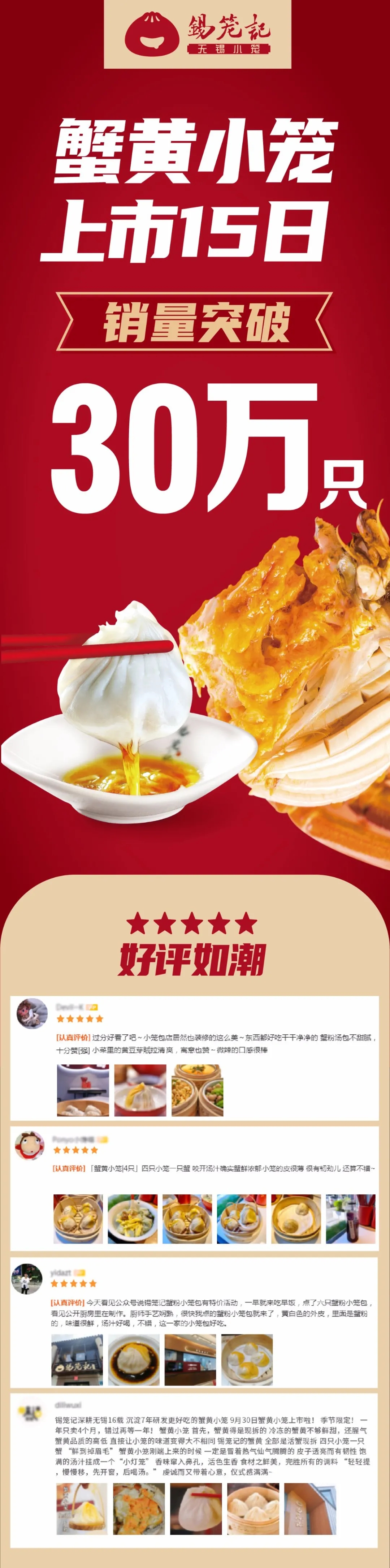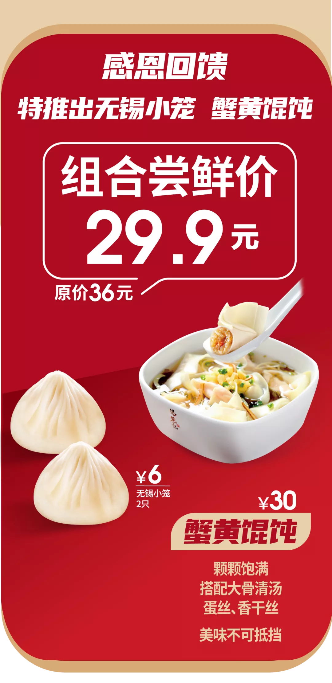 贺蟹黄小笼热销,感恩回馈蟹黄馄饨特价尝鲜